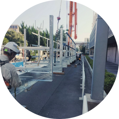 弊社はデッキプレート工事、鉄骨工事、機械器具設置工事といった事業の横展開を強みとしています。